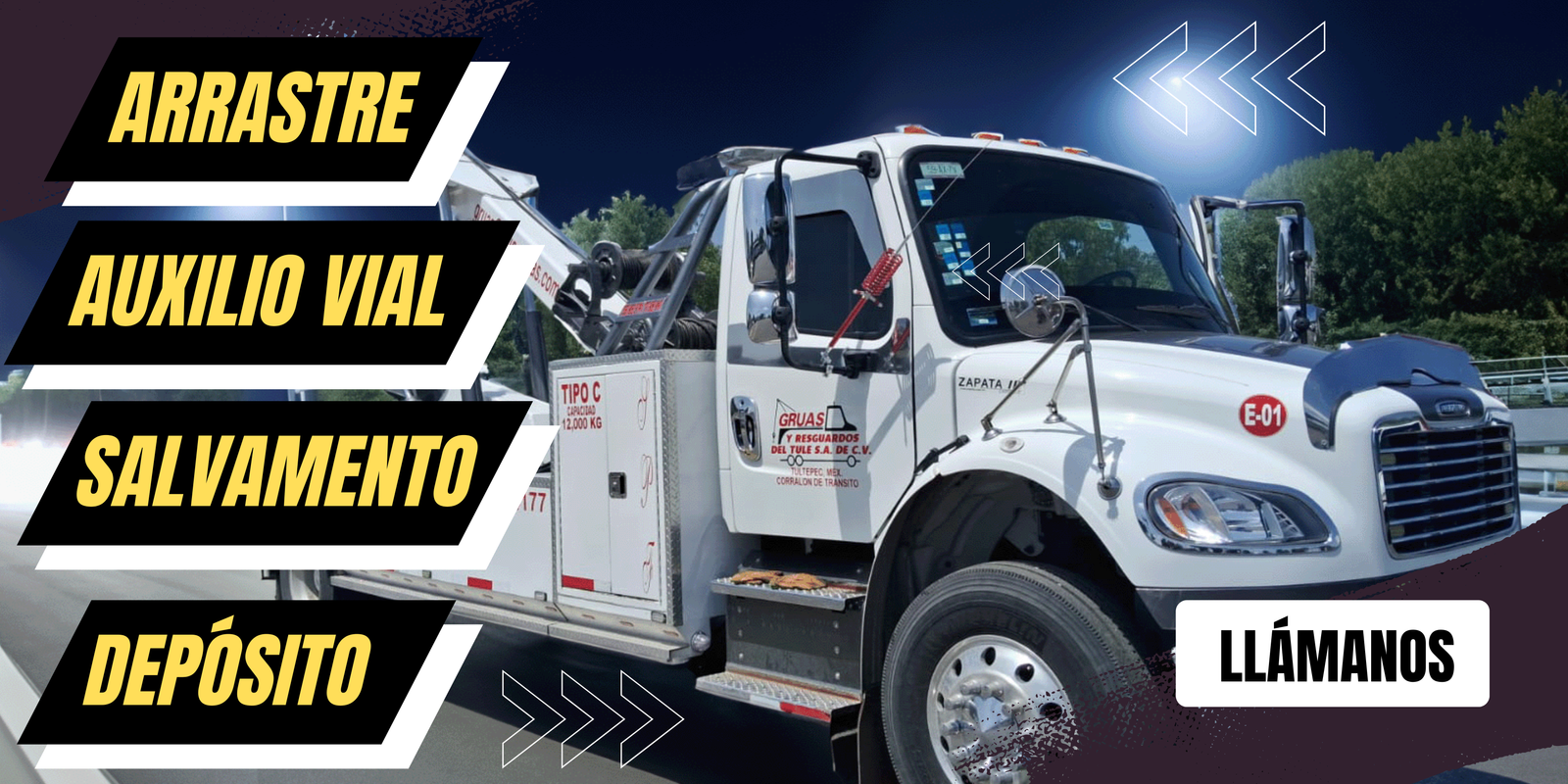 Grúas 24 horas los 7 días de la semana para cualquier vehículo, mercancia o maquinaria a cualquier parte de la república.